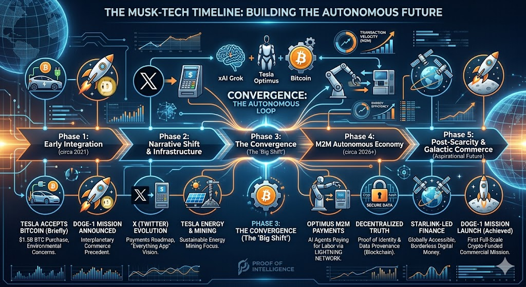 In this paradigm, Bitcoin is no longer just "digital gold" for humans; it becomes the native currency of artificial intelligence. Musk’s simultaneous investment in AI (xAI, Tesla Autopilot), robotics (Optimus), infinite energy (Tesla Energy), and decentralized internet/finance (Starlink, X, Crypto) reveals a singular masterplan: building the infrastructure for a post-scarcity, autonomous future.