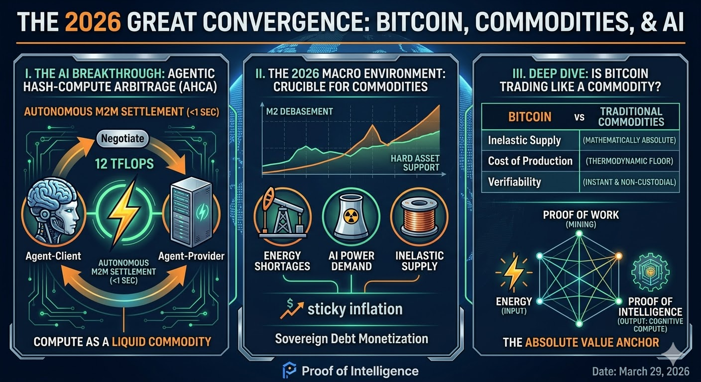 Welcome to the daily intelligence briefing for Proof of Intelligence. As we scan the ever-evolving landscape of artificial intelligence, cryptography, and macroeconomics on this day, March 29, 2026, a singular narrative is emerging with undeniable force: the absolute commoditization of intelligence, anchored by the decentralized settlement layer of Bitcoin.